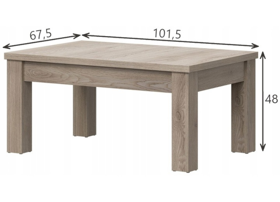 Konferenčný stolík ASTON LA11 s rozmermi 101,5 x 67,5 cm sa stane vkusným stredobodom vašej obývačky, najmä v kombinácii s priestrannou rohovou sedačkou. Jeho obdĺžnikový tvar efektívne využíva priestor, pričom stále poskytuje veľkorysý odkladací priestor pre vaše občerstvenie, obľúbené časopisy či štýlovú vázu. Vďaka svojmu čistému a minimalistickému spracovaniu v dekore dub cremona ho hravo zladíte s akýmkoľvek interiérovým štýlom. O odolnosť a dlhú životnosť sa stará 16 mm laminovaná drevotrieska s ABS hranami, vrchná doska má hrúbku 28 mm..