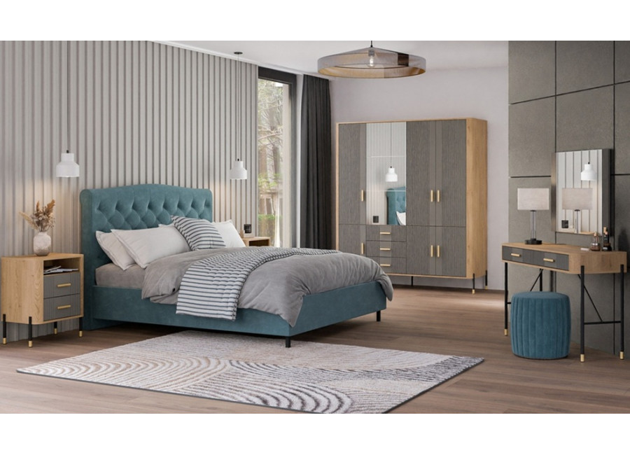 - predné plochy z MDF materiálu v matnej sivej farbe, zdobené jemným zvislým drážkovaním,