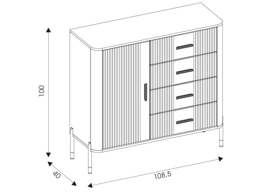• komoda v šírke 108,5 cm,