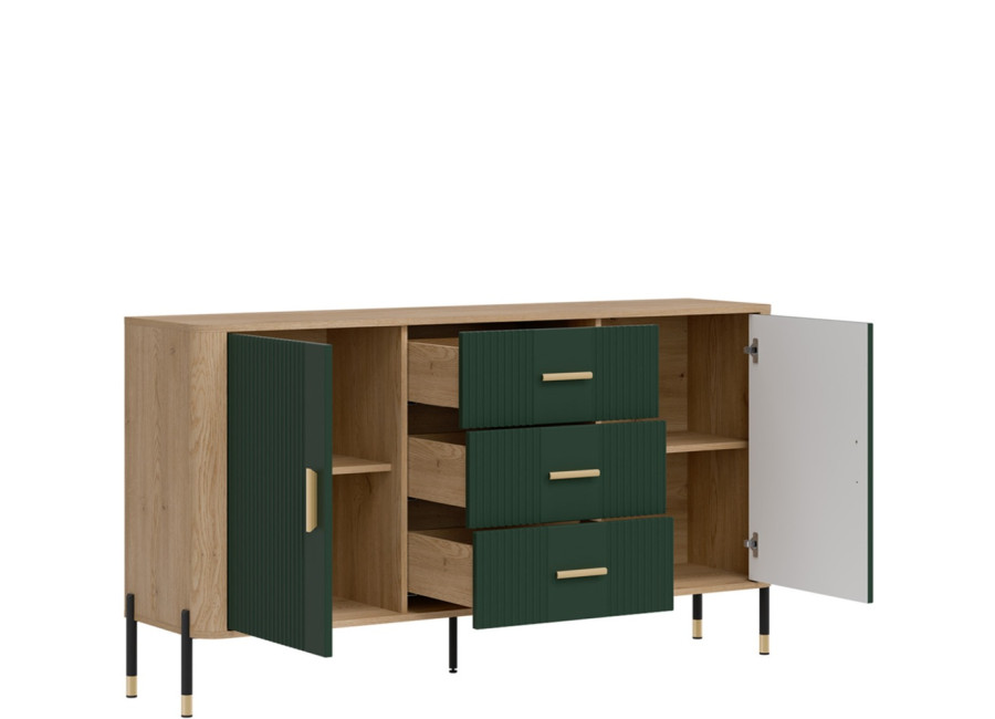 - predné plochy z MDF materiálu v matnej zelenej farbe, zdobené jemným zvislým drážkovaním,