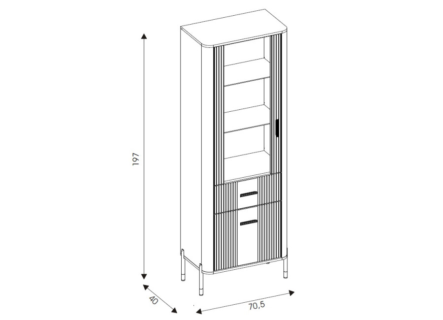 - vitrína v šírke 70,5 cm,