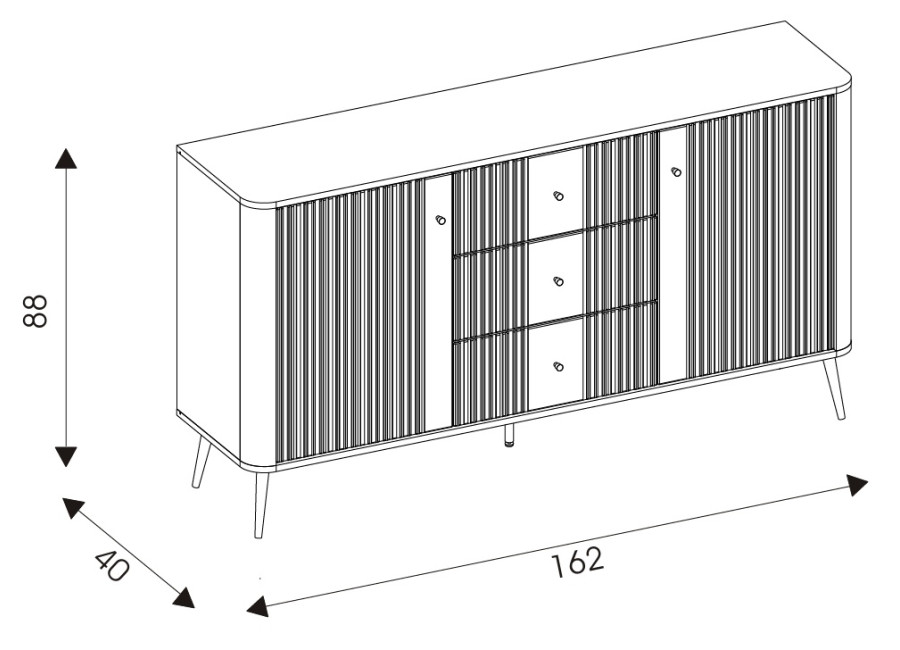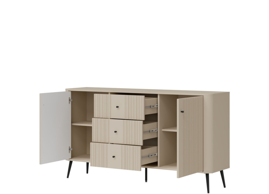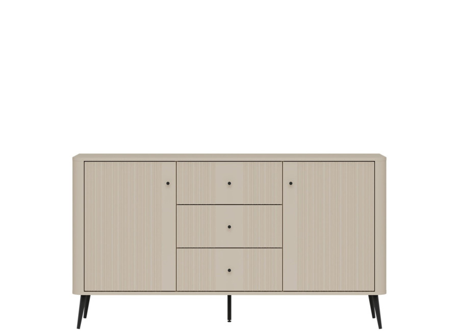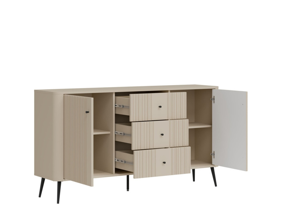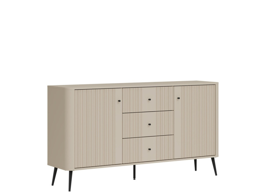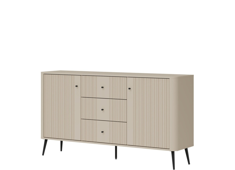 - predné plochy z MDF materiálu v matnej kašmírovej farbe, zdobené jemným zvislým drážkovaním,