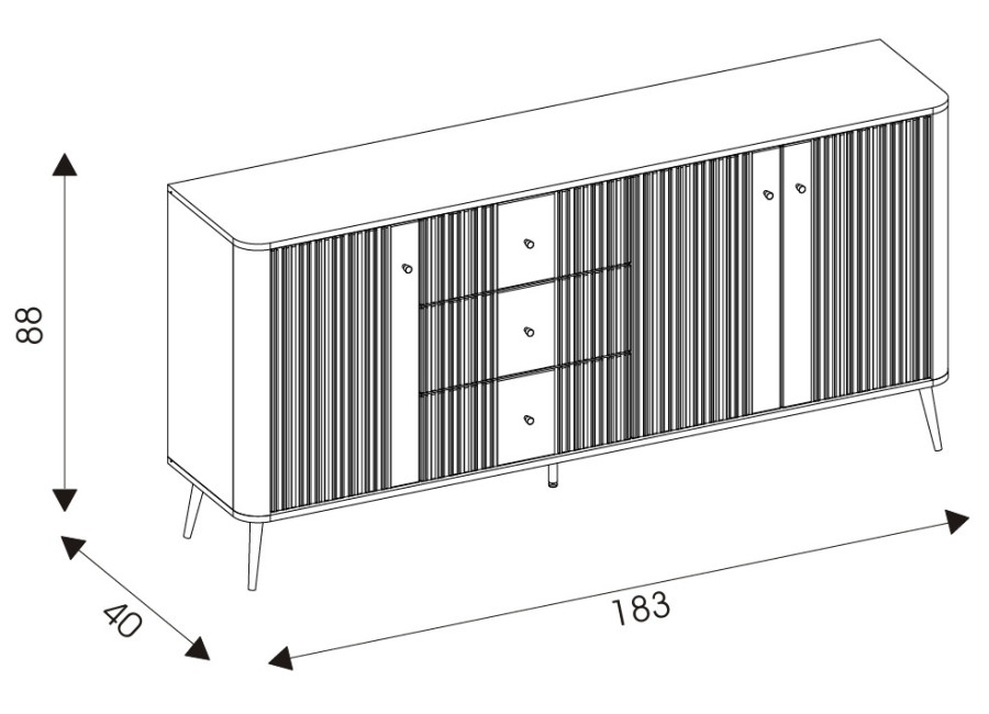 - komoda v šírke 183 cm,