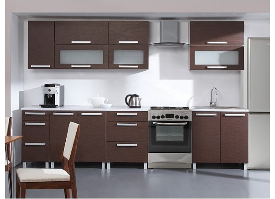 Kuchyňa MARRY 260 sa vyrába vo farbe wenge. Korpus skriniek je v sivej farbe. Na dolných skrinkách si môžete vybrať ozdobné nožičky alebo pevný sokel. V ponuke je veľké množstvo sektorových skriniek.
