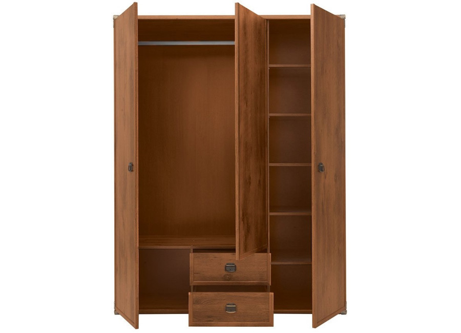 Nábytok INDIANA charakterizuje štýl Divokého Západu. Farby duba a borovice v starožitnom štýle Vás určite zaujmú, mosadzné úchytky majú zaujímavý tvar. Zariaďte si študentskú alebo obývaciu izbu týmto nábytkom.