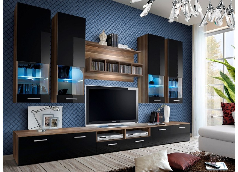 DORADE II slivka/čierny lesk, obývacia stena