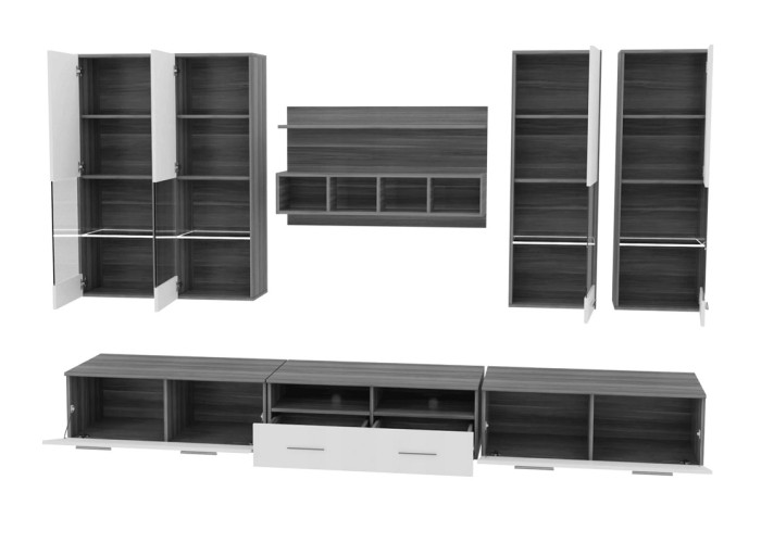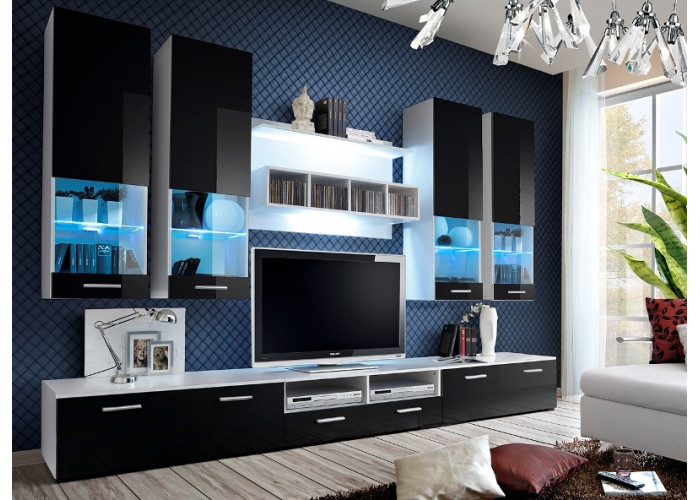 DORADE III biela/čierny lesk, obývacia stena