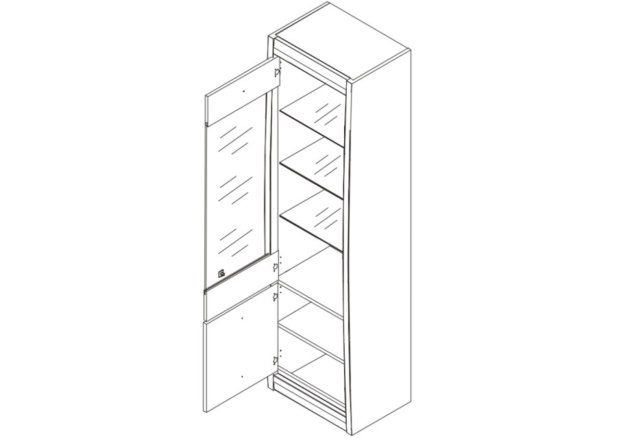 Elegantná vitrína FORREST FR08 je štýlovým a multifunkčným kúskom nábytku, ktorý nájde svoje uplatnenie ako barová skrinka v obývačke alebo v jedálni. Úložný priestor kombinuje dolnú uzatvorenú časť s hornými presklenými dvierkami, ktoré obsahujú sklenené police ideálne na vystavenie dekorácií či fotografií.