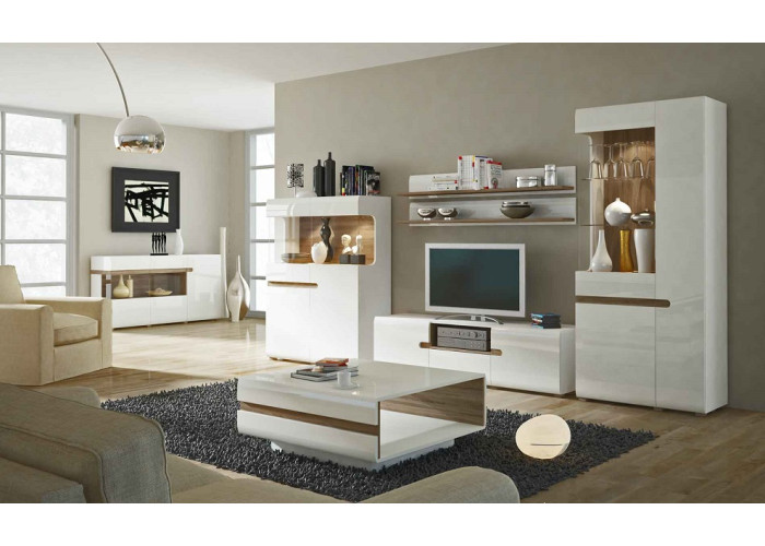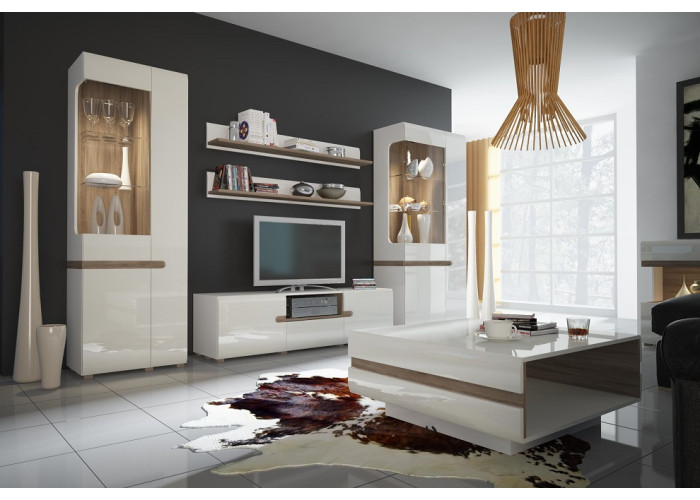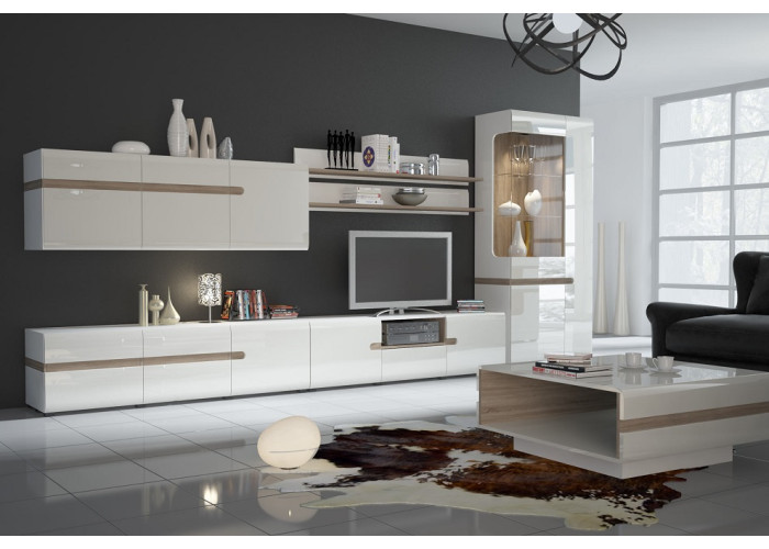 Sektorová kolekcia nábytku LYNATET (LINATE) umožňuje ľubovoľné zariadenie interiéru. Elegantná kolekcia nábytku vo farebnom prevedení biely lesk/dub truffe je ideálnym riešením pre miestnosti ako sú obývacia stena, spálňa alebo jedáleň.