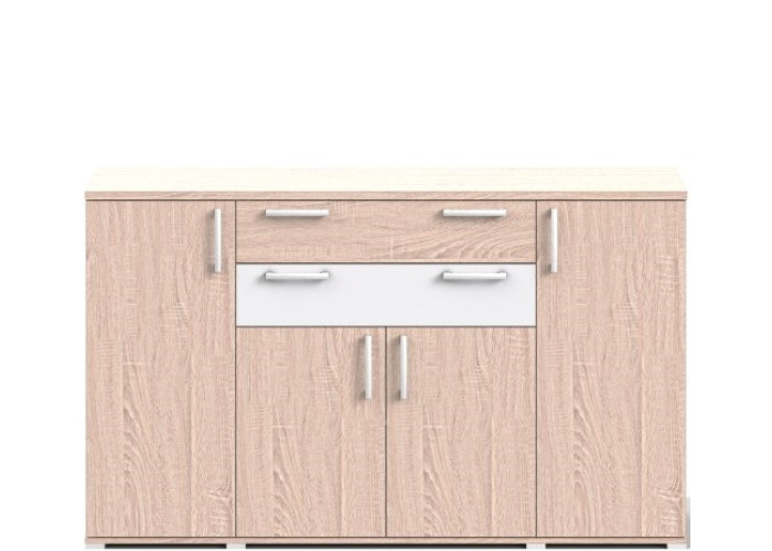 Praktický príborník REA OTTAWA UP 6 je zvislo rozdelený na tri časti. Ľavá a pravá časť je uzatvárateľná dvierkami do strán, pod ktorými sa nachádzajú vždy dve poličky. Stredná časť je vodorovne rozdelená na dve časti. Vo vrchnej časti sa nachádzajú dva praktické šuflíky, pričom jeden so šuflíkov môže byť v inom farebnom prevedení. Spodná časť je uzatvárateľná dvierkami, pod ktorými sa nachádza jedna dlhá polička. Moderný príborník so šuflíkmi je určený do jedálne, ale je možné ho použiť aj ako komodu v ktorejkoľvek miestnosti - v spálni, v obývačke, v detskej izbe, v predsieni alebo v hale. Praktický príborník do jedálne je vyrobený z kvalitnej laminovanej drevotrieskovej dosky. Použité hladké a tiché kovanie na šuflíkoch príborníka vysunie celú zásuvku.