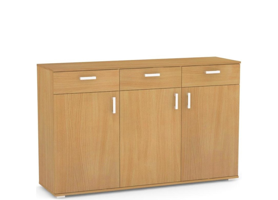 Komoda REA SISA 8 sa skladá z troch dvierok a troch zásuviek a poskytuje tak množstvo úložného priestoru. Komoda do domácnosti je vyrobená z kvalitnej laminovanej drevotrieskovej dosky.